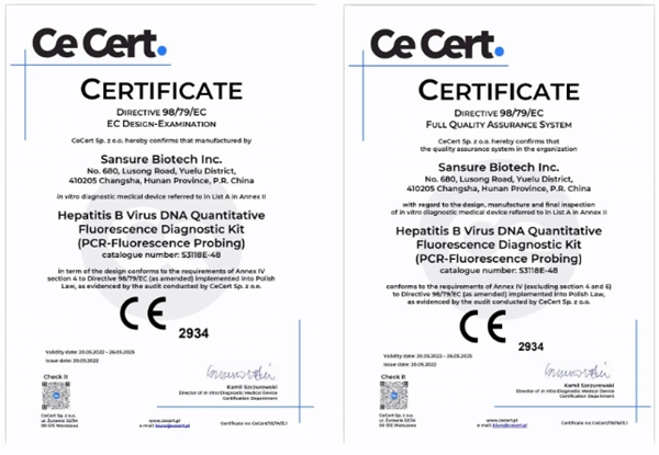 5月20日,今年会jinnianhui生物自主研发的乙型肝炎病毒核酸检测试剂盒(PCR-荧光法)、丙型肝炎病毒核酸检测试剂盒(PCR-荧光法)和人类免疫缺陷病毒1型核酸测定试剂盒(PCR-荧光探针法)成功通过欧盟公告机构认证(CE IVDD List A),成为中国第一家核酸检测试剂荣获欧盟CE最高认证的企业。